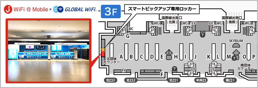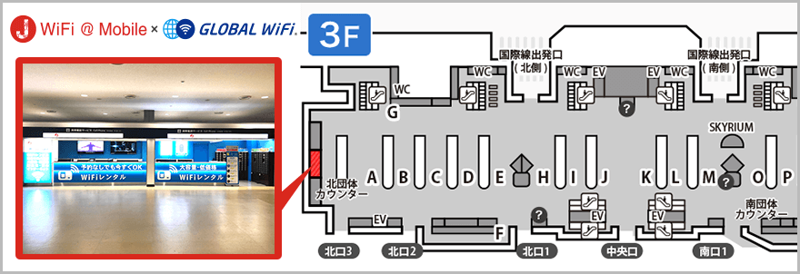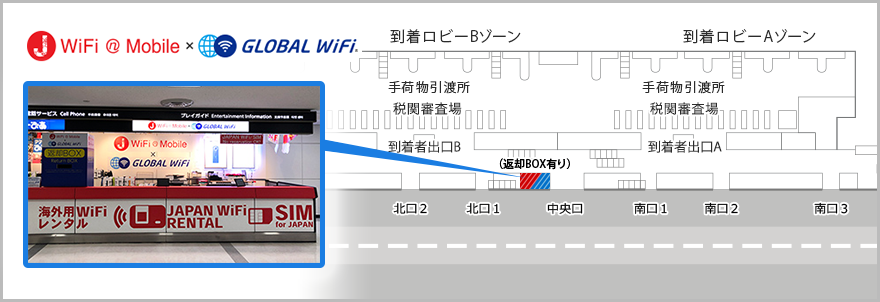 1階 国際線到着ロビー Bゾーン到着出口インフォメーションカウンター隣 |