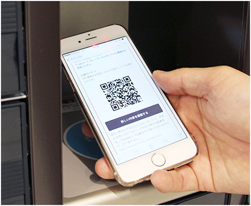 ロッカー中央の読み込み部へQRコードを上向きに差し入れてください。
